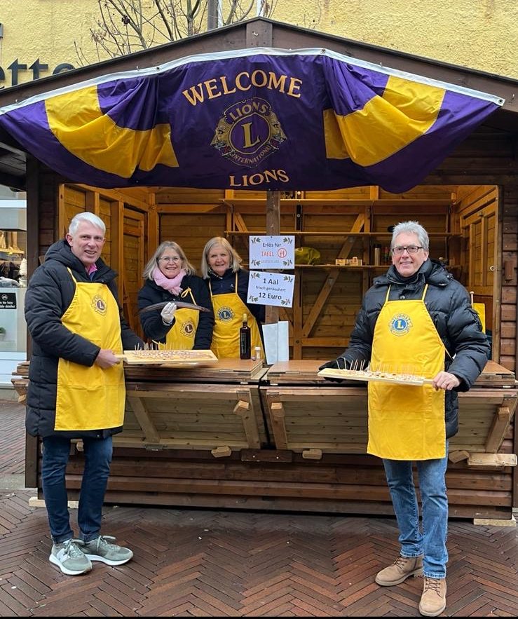 Auch in diesem Jahr haben die Lionsmitglieder und viele Helfer auf dem Weihnachstmarkt wieder von der der „Albe Fischfarm“ aus Haren gespendete Aale verkauft. Das Konzept „frisch und preisgünstig“ kam sehr gut an und der Vorrat war schnell verkauft.